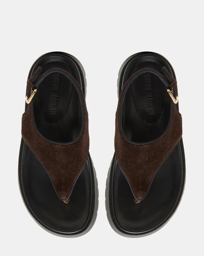 Die Tabor Brown Suede Zehensandale vereint Komfort mit zeitgemäßem Stil dank ihrer durchdachten Plateau-Konstruktion. Das gepolsterte Fußbett bietet den ganzen Tag über Halt, während die markante Profilsohle für hervorragende Traktion und Langlebigkeit sorgt. Dieses vielseitige Design lässt sich nahtlos von Freizeitaktivitäten bis hin zu entspannter Wochenendkleidung kombinieren und bietet die perfekte Balance zwischen Funktionalität und moderner Ästhetik.