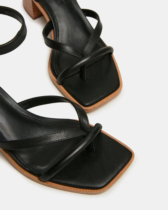 Erweitern Sie Ihre Schuhkollektion mit dem Modell „Tilly“ aus schwarzem Leder, einer Sandale mit Riemchen und Blockabsatz sowie eckiger Zehenpartie, die sowohl auf Stil als auch auf Stabilität ausgelegt ist. Dank eines sicheren Fesselriemens sorgt diese Sandale für einen sicheren Sitz, während der stabile Blockabsatz auch bei längerem Tragen bequemen Halt bietet. Hergestellt aus hochwertigen Materialien, lässt sie sich mühelos mit Outfits für den Tag und den Abend kombinieren und vereint raffinierte Ästhetik mit praktischem Komfort.