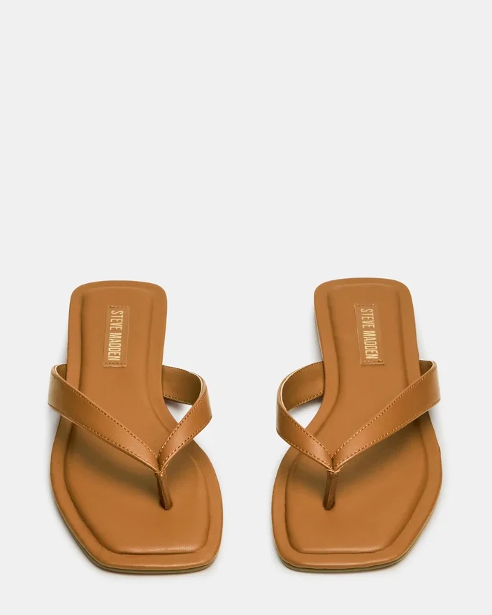 Die Trella Sandale aus hellbraunem Leder besticht durch ein modernes Design mit eckiger Zehenpartie, kombiniert mit einem minimalistischen Zehensteg, der sowohl Stil als auch Komfort bietet. Aus hochwertigen Materialien gefertigt, sorgt sie für einen raffinierten Look, der sich für verschiedene Anlässe eignet. Ihre schlanke Silhouette betont die Fußform und gewährleistet gleichzeitig einen sicheren Sitz, was sie zur ersten Wahl für alle macht, die bei Schuhwerk für warmes Wetter nach zurückhaltender Eleganz suchen.