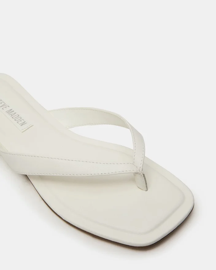 Die weiße Ledersandale „Trella“ besticht durch ein modernes Design mit eckiger Zehenpartie, kombiniert mit einem minimalistischen Riemchen, und bietet sowohl Stil als auch Komfort. Sie ist aus hochwertigen Materialien gefertigt und sorgt für einen eleganten Look, der sich für verschiedene Anlässe eignet. Ihre schlanke Silhouette betont die Fußform und gewährleistet gleichzeitig einen sicheren Sitz, was sie zur ersten Wahl für alle macht, die bei Schuhwerk für warmes Wetter auf zurückhaltende Eleganz setzen.