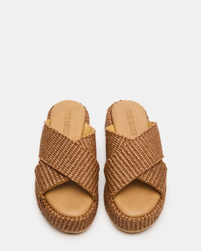 Verleihen Sie Ihrem Freizeitlook das gewisse Etwas mit der flachen Plateausandale „Tulum Brown Raffia“. Mit ihrer strapazierfähigen Plateausohle für mehr Höhe und Komfort verbindet diese Sandale Raffia-Details mit modernem Design und bietet so sowohl Stil als auch Stabilität. Ideal für Ausflüge bei warmem Wetter, bietet sie Halt, ohne Abstriche bei der Mode zu machen, und ist somit eine vielseitige Ergänzung Ihrer Schuhkollektion.