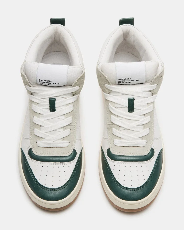 Eine Flatform-Sohle und ein gepolsterter Knöchelkragen verleihen dem Calypso-Sneaker eine markante Silhouette, die durch farblich abgesetzte Akzente im gesamten Design hervorgehoben wird.