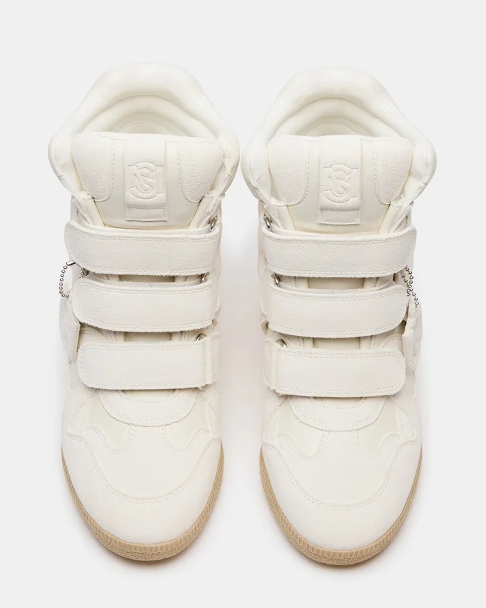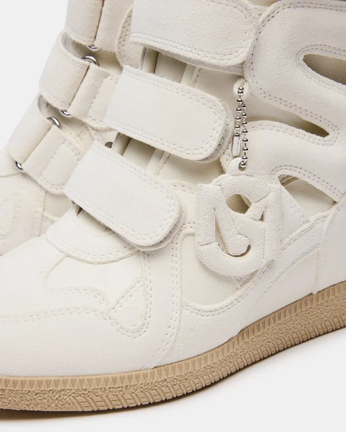 Der Mavis High-Top-Sneaker aus weißem Wildleder verbindet klassischen Stil mit modernem Komfort. Er ist aus hochwertigen Materialien gefertigt und bietet Langlebigkeit sowie einen edlen Look. Der Klettverschluss sorgt für einen sicheren Sitz und einfaches An- und Ausziehen, was ihn ideal für alle macht, die sowohl Komfort als auch Funktionalität suchen. Perfekt, um lässige Outfits mit einer eleganten, raffinierten Note aufzuwerten.