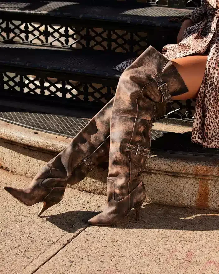Der Baddie-Stiefel ist meisterhaft gefertigt und sowohl ausgefallen als auch praktisch. Mit spitzer Zehenpartie und Schnallendetail verleihen diese Overknee-Stiefel mit High Heels jedem Outfit eine einzigartige Note. Werten Sie Ihren Stil mit diesen auffälligen Stiefeln auf.