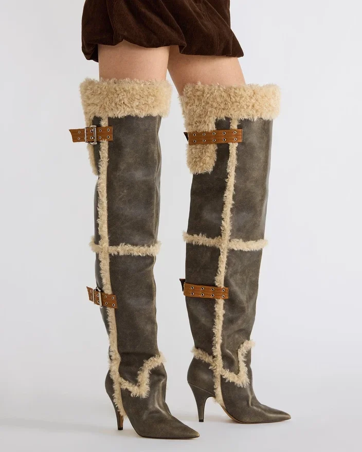 Der fachmännisch gefertigte Stiefel „Baddie Faux Fur Brown Distressed“ ist sowohl ausgefallen als auch praktisch. Mit spitzer Zehenpartie und Schnallendetail verleihen diese Overknee-Stiefel mit High Heels jedem Outfit eine einzigartige Note. Werten Sie Ihren Stil mit diesen auffälligen Stiefeln auf.
