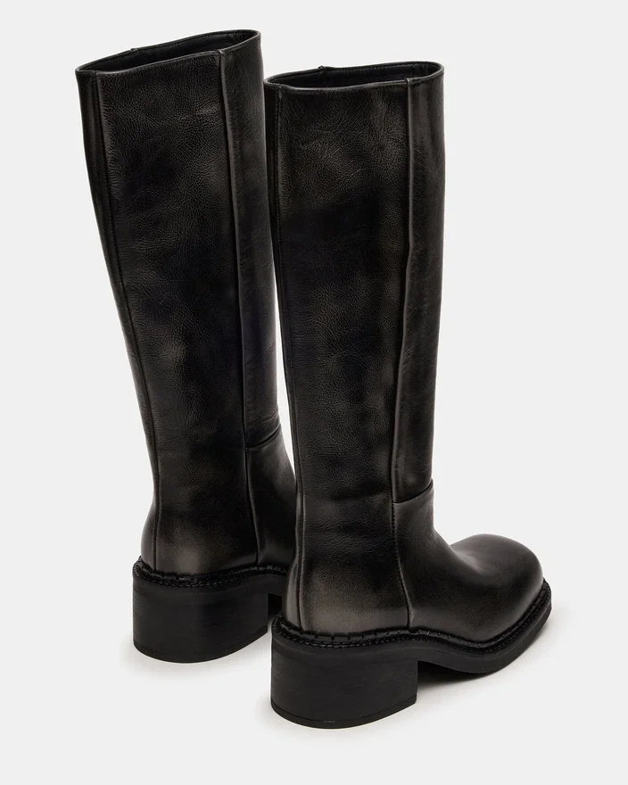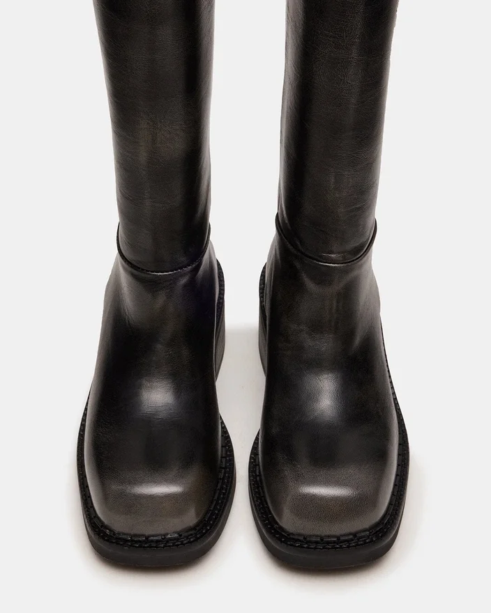Die aus hochwertigen Materialien gefertigten Davos Black Distressed Kniestiefel zeichnen sich durch ein elegantes Design mit eckiger Zehenpartie und einen stabilen Blockabsatz aus, der ultimativen Stil und Komfort bietet. Werten Sie jedes Outfit mit diesen vielseitigen und zeitlosen Stiefeln auf.