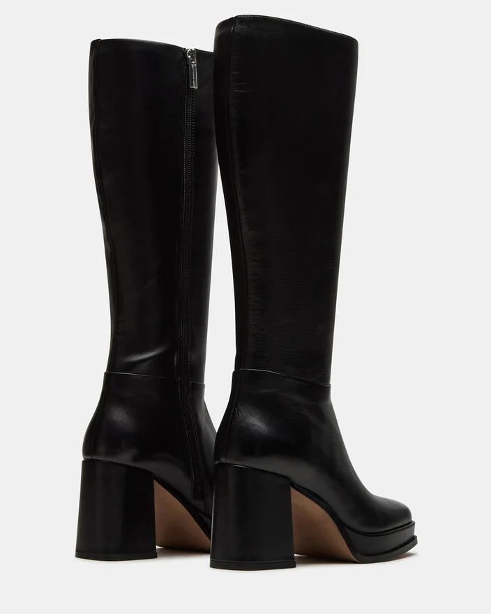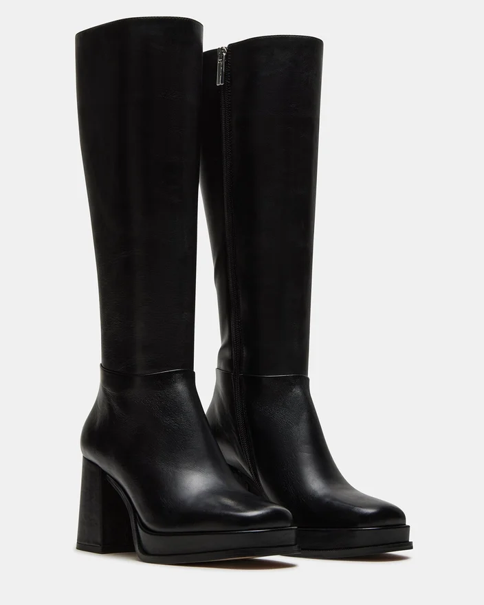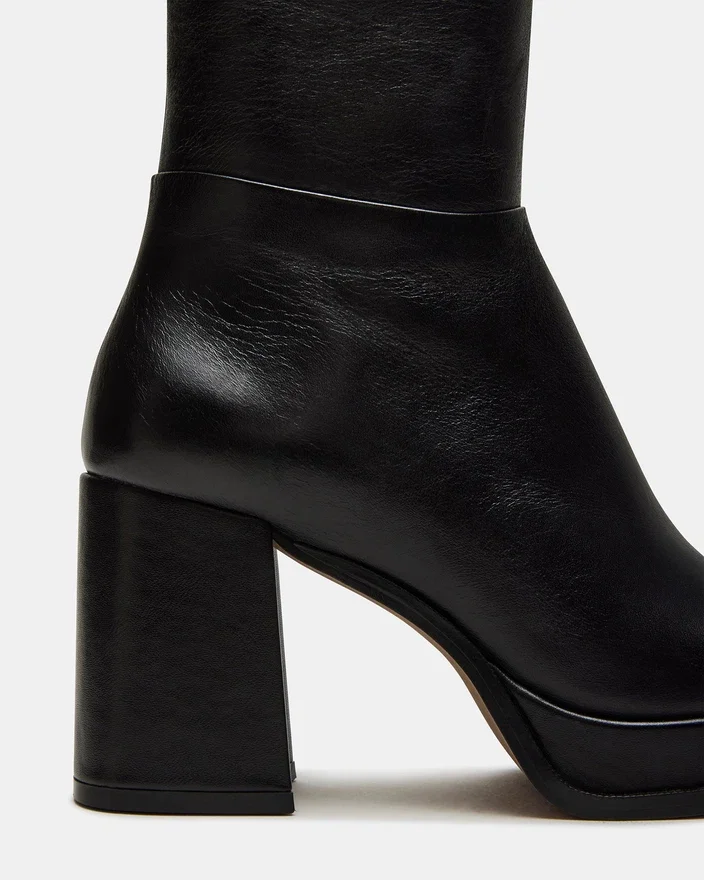 Diese kniehohen Stiefel wurden für ultimative Eleganz entworfen und überzeugen durch eine schlanke, eckige Zehenpartie und einen stabilen Blockabsatz für mühelosen Stil. Werten Sie Ihre Garderobe mit dem „Mystery Platform Boot“ auf.