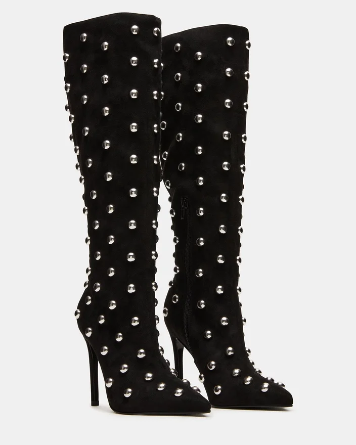 Der Nitro Black Studs ist eine raffinierte und vielseitige Ergänzung für jede Garderobe. Dieser spitz zulaufende Stiefel mit High Heels wurde sowohl auf Stil als auch auf Komfort ausgelegt und sorgt für einen selbstbewussten Gang. Mit seiner kniehohen Schaftlänge verleiht er jedem Outfit einen Hauch von Eleganz.