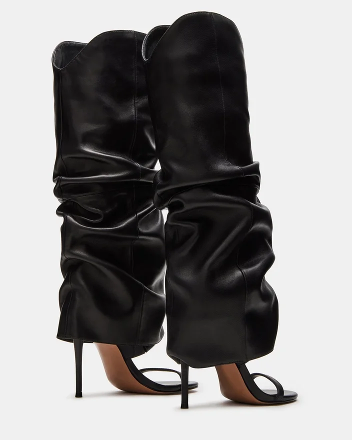 Der Ravine Cuffed Knee-High Stiefel wurde fachmännisch gefertigt und entworfen und verfügt über eine offene Zehenpartie und einen Stiletto-Absatz für einen stilvollen Touch. Die abgerundete Zehenpartie sorgt für Komfort, während das schlanke Design einen Hauch von Raffinesse verleiht. Werten Sie Ihren Look mit diesem Must-Have-Stiefel auf.