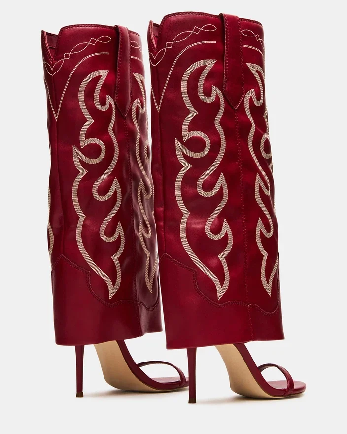 Der Ravine Western Red Cuffed Knee-High Stiefel wurde fachmännisch gefertigt und entworfen und verfügt über eine offene Zehenpartie und einen Stiletto-Absatz für einen stilvollen Touch. Die abgerundete Zehenpartie sorgt für Komfort, während das schlanke Design einen Hauch von Raffinesse verleiht. Werten Sie Ihren Look mit diesem Must-Have-Stiefel auf.