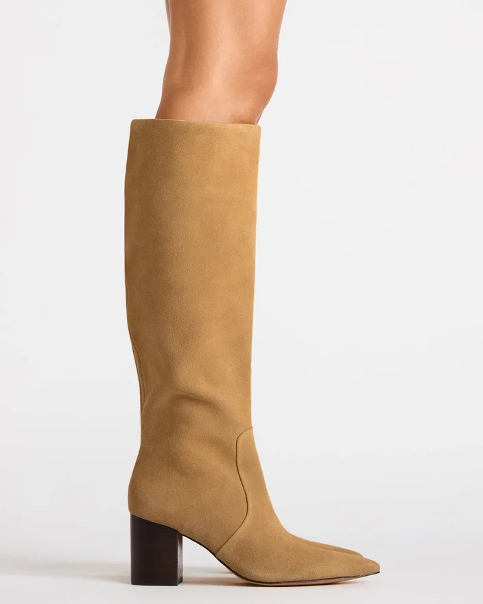 Verleihen Sie Ihrem Stil das gewisse Etwas mit den Skyline-Kniehohen Stiefeln. Diese Stiefel zeichnen sich durch ein elegantes Design mit spitzer Zehenpartie und einem stabilen Blockabsatz aus und bieten sowohl Mode als auch Komfort. Dank hochwertiger Materialien werden sie sicher für viele Jahre ein fester Bestandteil Ihrer Garderobe sein.