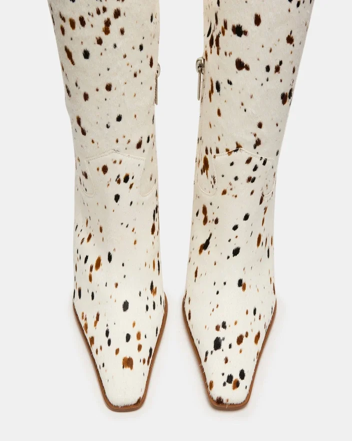 Erweitern Sie Ihre Schuhkollektion mit dem kniehohen Stiefel „Wescot Brown Cow Print“, der sich durch eine moderne eckige Zehenpartie und einen raffinierten Absatz auszeichnet. Dieser aus hochwertigen Materialien gefertigte Stiefel bietet sowohl Stil als auch Struktur und eignet sich perfekt für elegante Looks, die Komfort und Selbstbewusstsein erfordern. Seine kniehohe Silhouette sorgt für vielseitige Kombinierbarkeit und lässt sich nahtlos mit Kleidern oder taillierten Hosen zu einem eleganten Gesamtbild kombinieren.