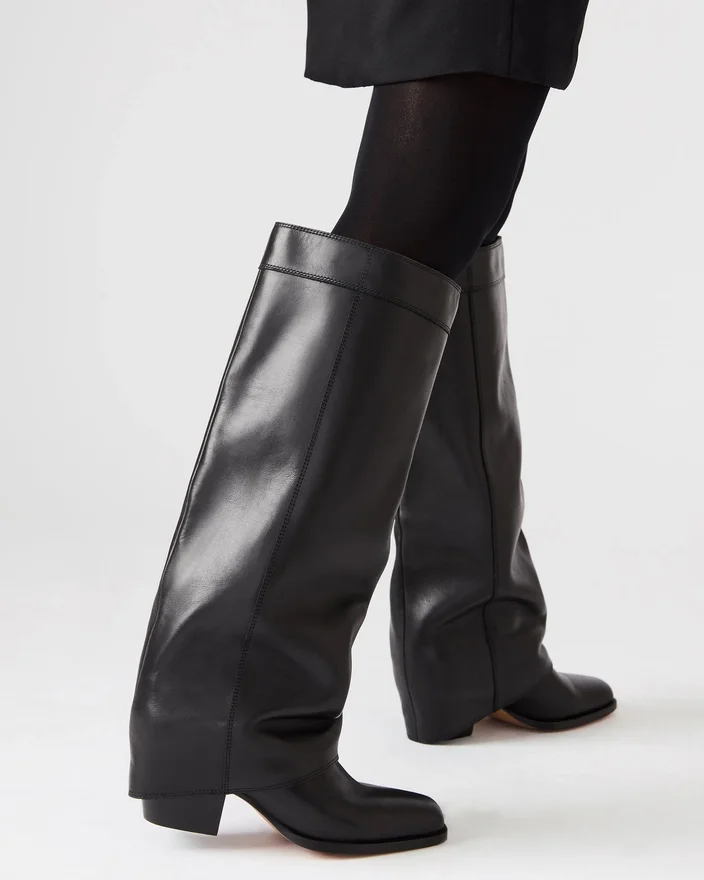 Erweitern Sie Ihre Schuhkollektion mit dem Winnick Olive Leather Stiefel, der sich durch ein raffiniertes, umgeschlagenes Design auszeichnet, das bis zum Knie reicht und für einen auffälligen Look sorgt. Mit einer modernen eckigen Zehenpartie und einem stabilen Blockabsatz kombiniert dieser Stiefel Stil mit Stabilität und eignet sich somit ideal für den ganzen Tag. Die Konstruktion bietet Langlebigkeit und ein elegantes Finish, perfekt zum Kombinieren mit sowohl lässigen als auch eleganten Outfits.