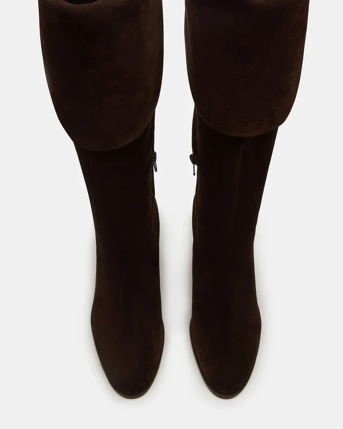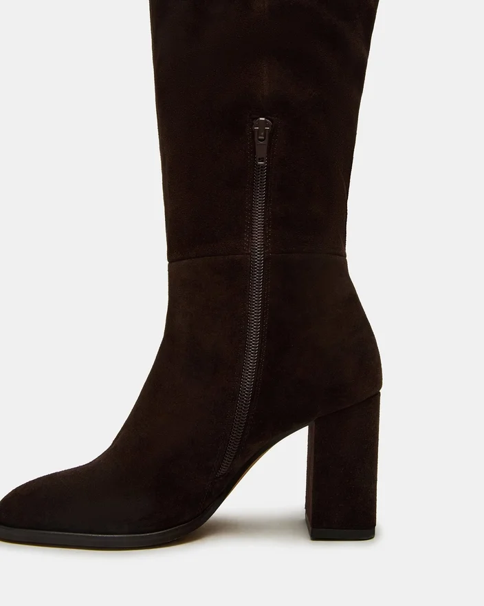 Der braune Wildlederstiefel von Winslet besticht durch seine kniehohe Silhouette und einen stabilen Blockabsatz, der sowohl Stil als auch Halt bietet. Die abgerundete Zehenpartie sorgt für Tragekomfort auch bei längerem Tragen und macht ihn zu einer vielseitigen Wahl, um Ihre Garderobe mit einer raffinierten, professionellen Note aufzuwerten. Dieser Stiefel vereint zeitlose Eleganz mit praktischer Funktionalität.
