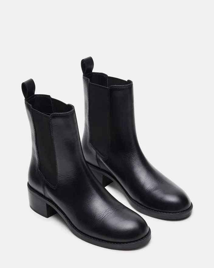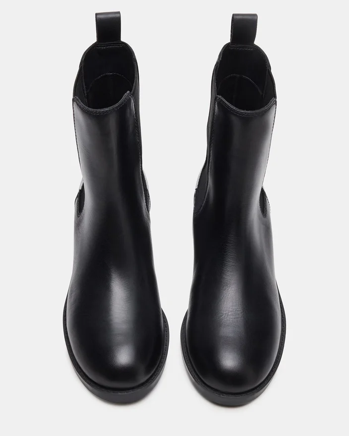 Der Kaplan Chelsea-Stiefel aus schwarzem Leder vereint klassisches Design mit hochwertiger Handwerkskunst. Mit elastischen Seiteneinsätzen bietet er eine schlanke Silhouette und lässt sich leicht anziehen. Sein niedriger Absatz und die gepolsterte Innensohle sorgen für ganztägigen Komfort und machen ihn zu einer vielseitigen Wahl sowohl für den Beruf als auch für Freizeitaktivitäten.