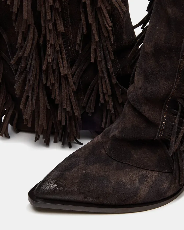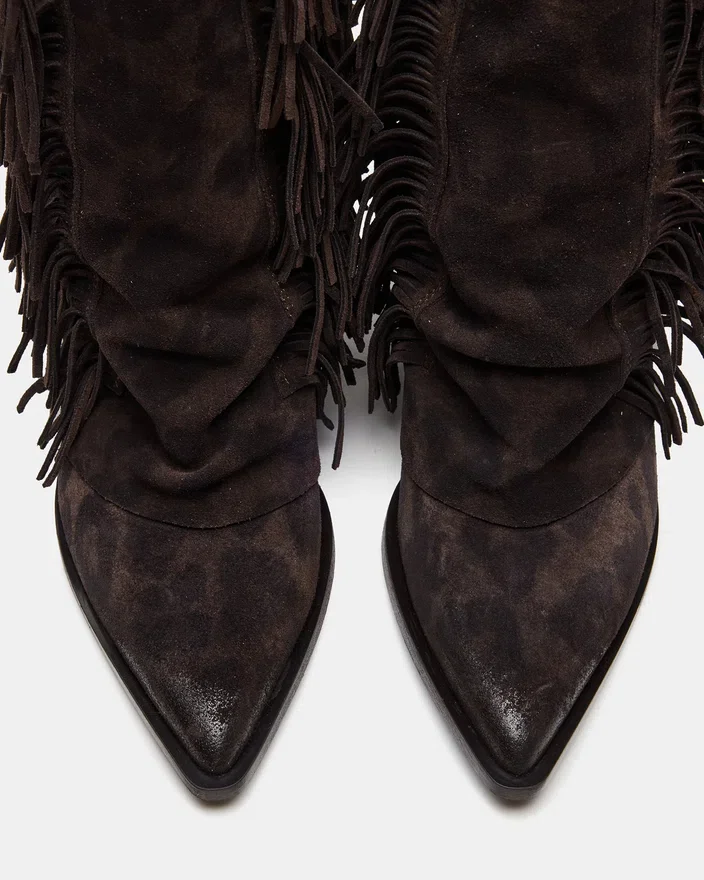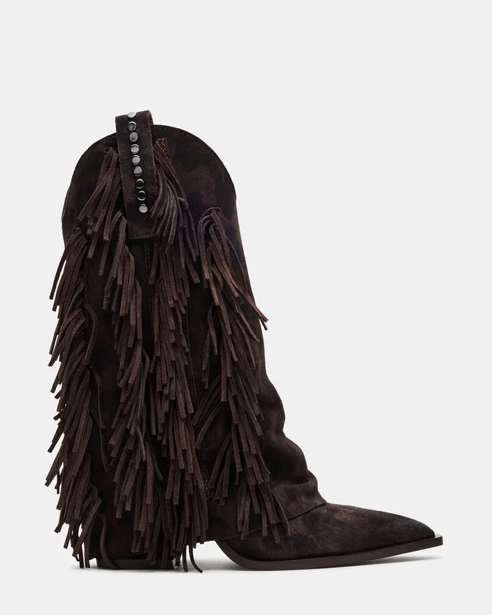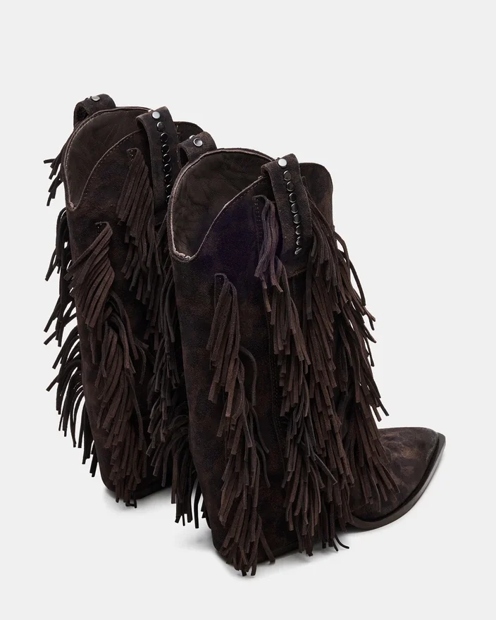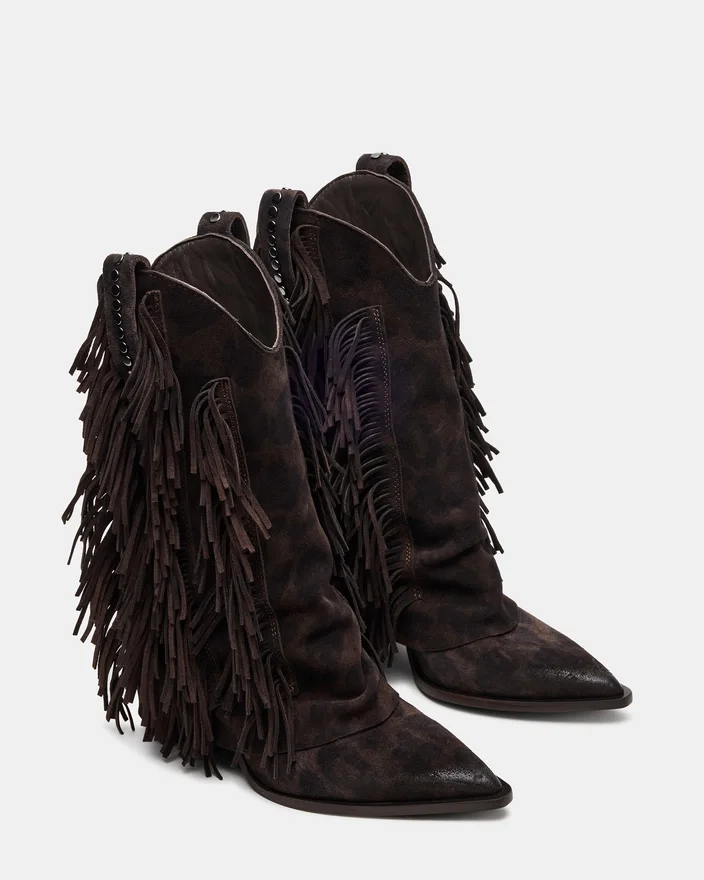 Der Landmark Brown Leopard Stiefeletten zeugt von meisterhafter Handwerkskunst mit einem markanten Western-Stil. Mit stilvollen Fransenakzenten, Nietenverzierungen und einer umgeschlagenen Silhouette bieten diese Stiefeletten einen unverwechselbaren Look. Die spitze Zehenpartie unterstreicht ihr elegantes Profil und macht sie zur idealen Wahl für alle, die eine vielseitige Mischung aus Charakter und Raffinesse suchen.