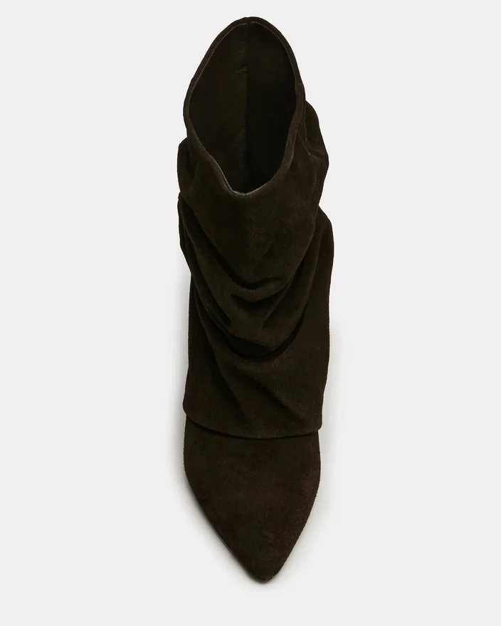 Die Stiefeletten aus braunem Wildleder von Lexen besticken durch ihr unverwechselbares Design und ihren raffinierten Stil. Die spitze Zehenpartie sorgt für eine verlängerte Silhouette, die den Fuß vorteilhaft betont, während der charakteristische Umschlag für architektonische Akzente und vielseitige Styling-Möglichkeiten sorgt.