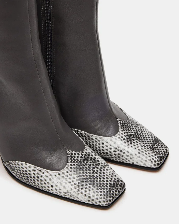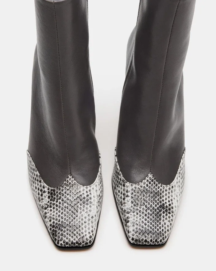 Werten Sie Ihren Look mit unseren Lyle Grey Leder-Stiefeletten mit Absatz auf, die mit einer trendigen eckigen Zehenpartie gestaltet sind. Ob als schicke Stiefeletten für den Abend oder als stilvoller Akzent für Ihre Alltagsgarderobe – genießen Sie die Vielseitigkeit und den Komfort dieses unverzichtbaren Must-Haves.