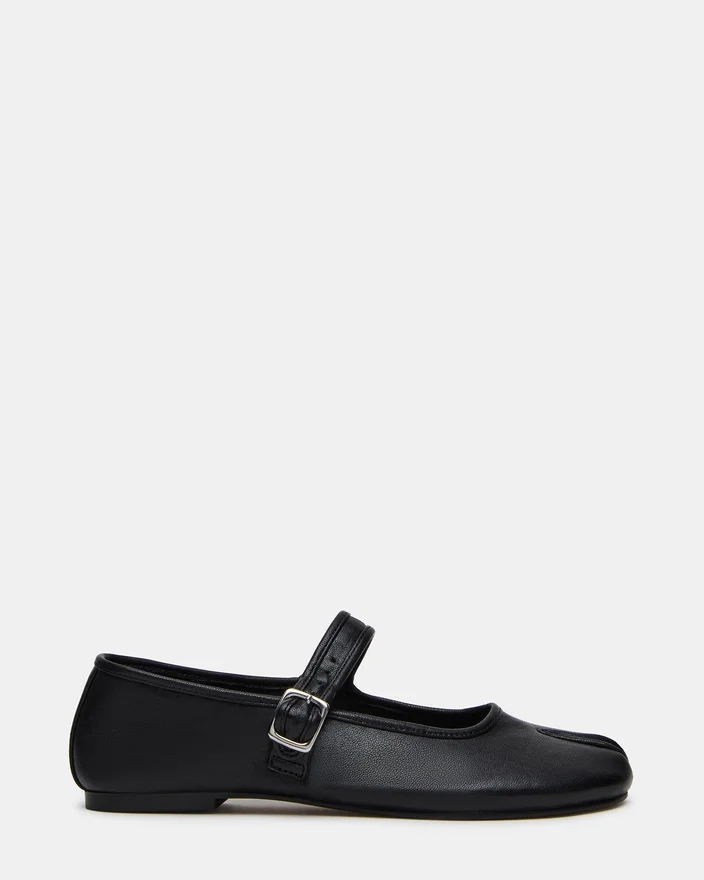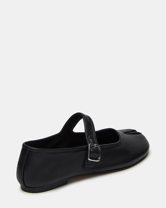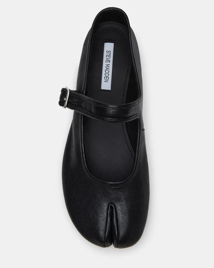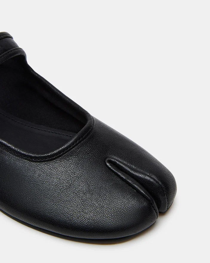 Der Calara Black Leather verbindet zeitgenössisches Design mit zeitloser Eleganz. Dieser Tabi-Schuh mit geteilter Zehenpartie besticht durch eine anmutige Ballerinasilhouette, die sich nahtlos von Freizeit- bis hin zu eleganten Anlässen eignet. Der Mary-Jane-Riemen sorgt für einen sicheren, verstellbaren Sitz, und die flache Sohle bietet den ganzen Tag über Komfort, ohne dabei an Stil einzubüßen. Perfekt für alle, die einen unverwechselbaren Schuh suchen, der Innovation mit klassischem Charme verbindet.