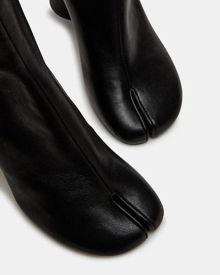 Der Caro Black Leather zeichnet sich durch die unverwechselbare Tabi-Silhouette mit geteilter Zehenpartie aus und bietet moderne Ästhetik mit funktionalem Komfort. Ein robuster Blockabsatz sorgt den ganzen Tag über für stabilen Halt und bewahrt gleichzeitig ein schlankes Profil. Diese Stiefeletten verbinden nahtlos gehobenen Stil mit Alltagstauglichkeit.