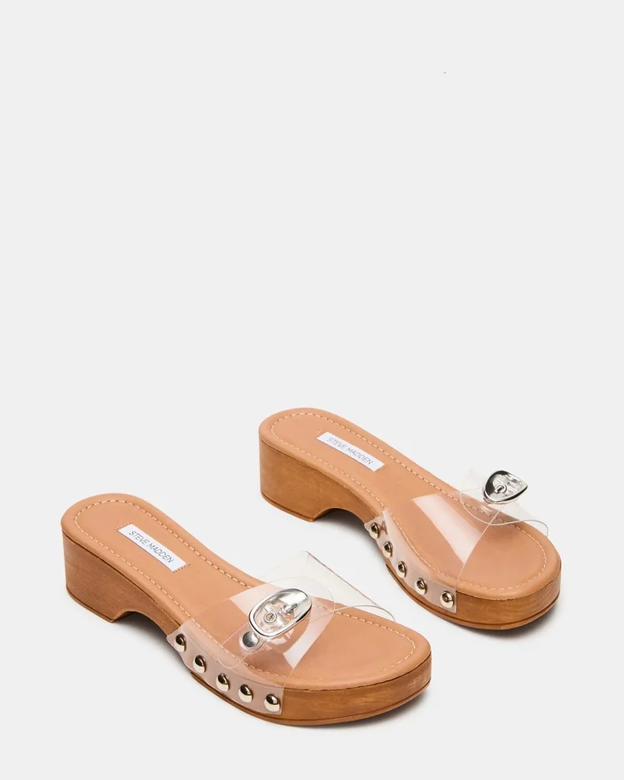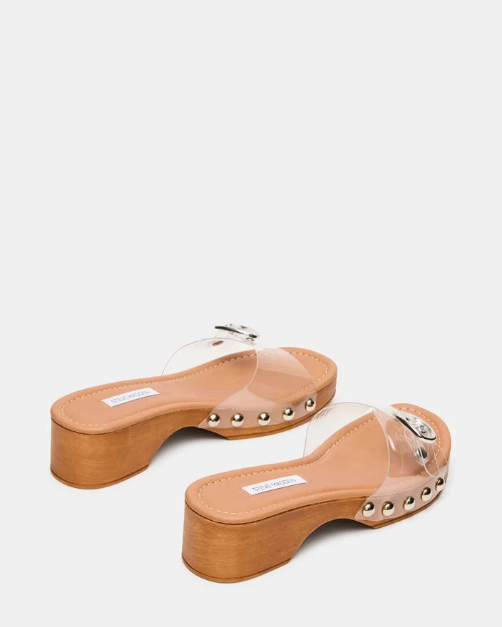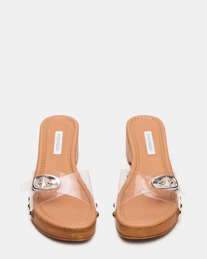 Die Fredi Clear Mule verbindet zeitgemäßes Design mit praktischem Komfort. Mit einem stabilen Plateauschuhe-Typ, der Ihren Gang erhöht, besticht diese Sandale durch ein markantes Schnallenriemendetail über dem Obermaterial, das für sicheren Halt und optische Akzente sorgt. Die schlanke Silhouette passt nahtlos von Freizeit-Garderobe bis hin zu Abendveranstaltungen und bietet vielseitige Styling-Möglichkeiten.