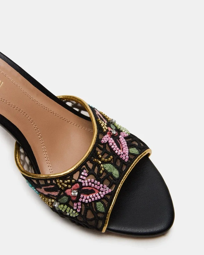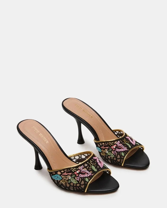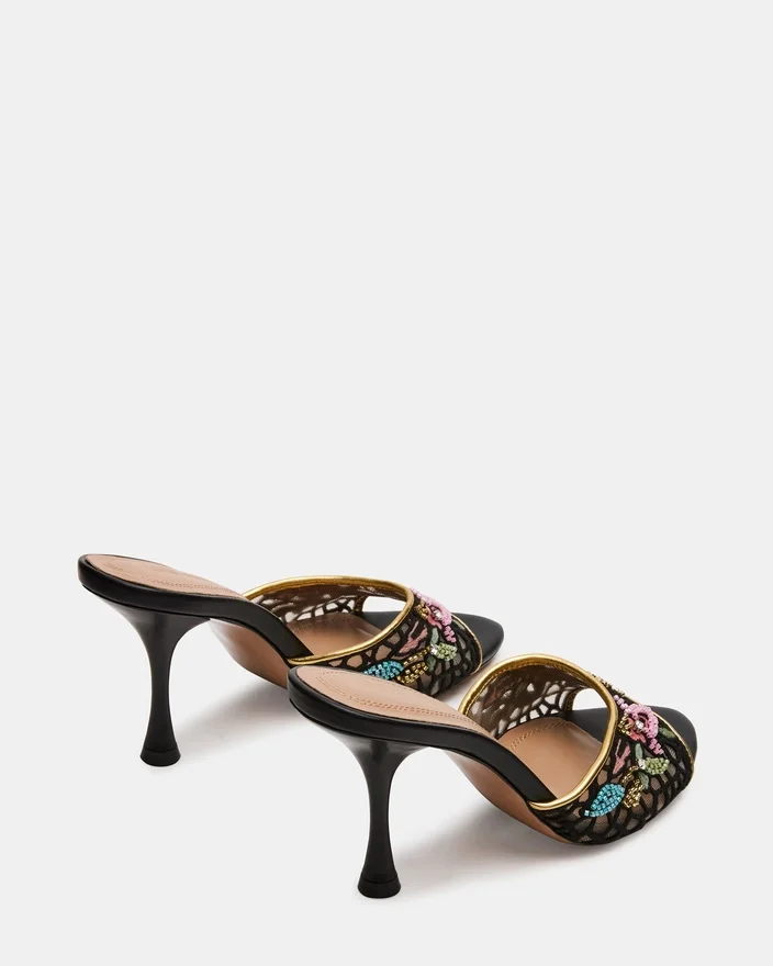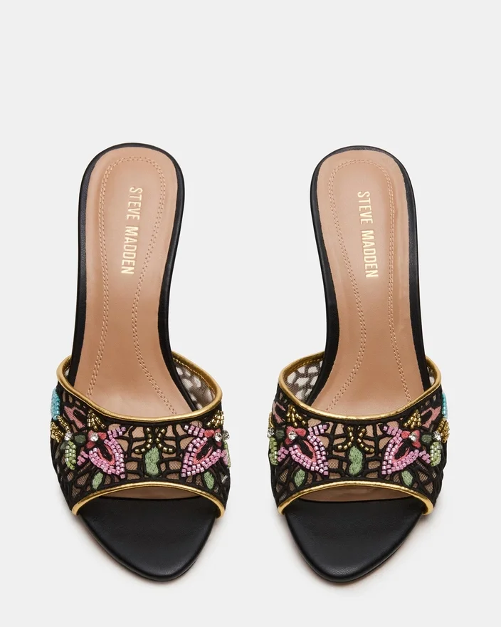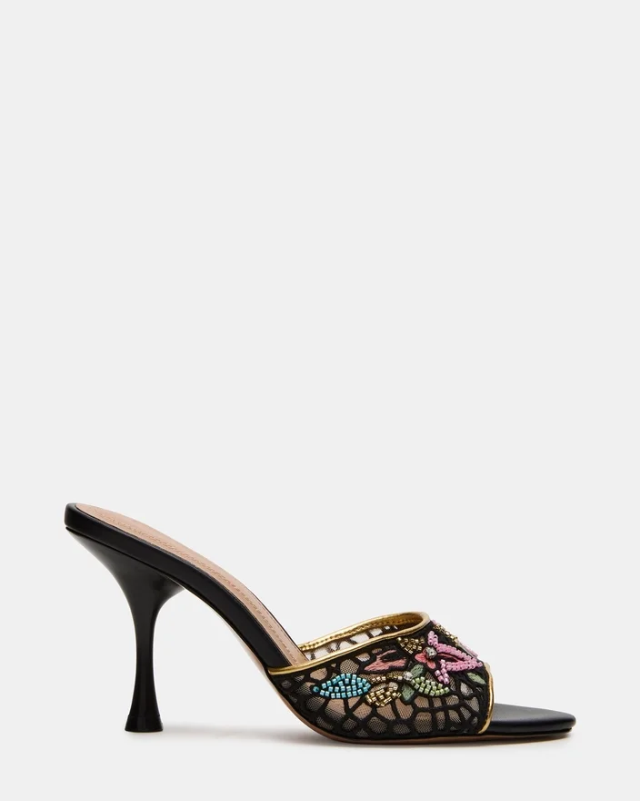 Der Santi Mesh Black Multi vereint moderne Raffinesse mit zeitloser Eleganz in einem Mule-Design mit spitzer Zehenpartie. Seine schlanke Silhouette verlängert das Bein, während das einzigartige Obermaterial einen zeitgemäßen, kaum wahrnehmbaren Look verleiht, der sich ideal für vielseitige Styling-Möglichkeiten eignet. Dieser Absatz wurde sowohl für Komfort als auch für selbstbewusstes Tragen entworfen und lässt sich nahtlos vom Tag in den Abend überführen, wodurch er eine erstklassige Wahl für eine raffinierte Garderobe darstellt.