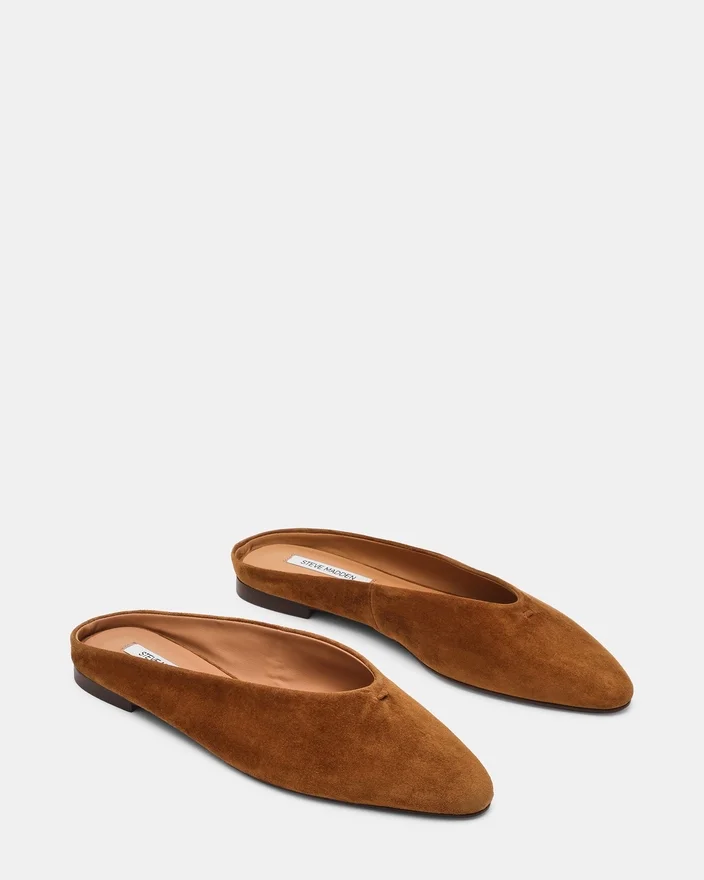 Die Sherman Chestnut Suede Mule besticht durch ihre zurückhaltende Eleganz mit mandelförmiger Zehenpartie und bequemer Slip-On-Passform. Dieser flache Schuh bietet den ganzen Tag über Komfort, ohne dabei an Eleganz einzubüßen, und ist somit ein unverzichtbarer Bestandteil jeder Garderobe. Das schlanke Design lässt sich mühelos vom Büro in den Abend überführen, während die sichere Passform den ganzen Tag über für Stabilität sorgt. Ein vielseitiges Basisteil, das zu allem passt, von taillierten Hosen bis hin zu fließenden Kleidern.