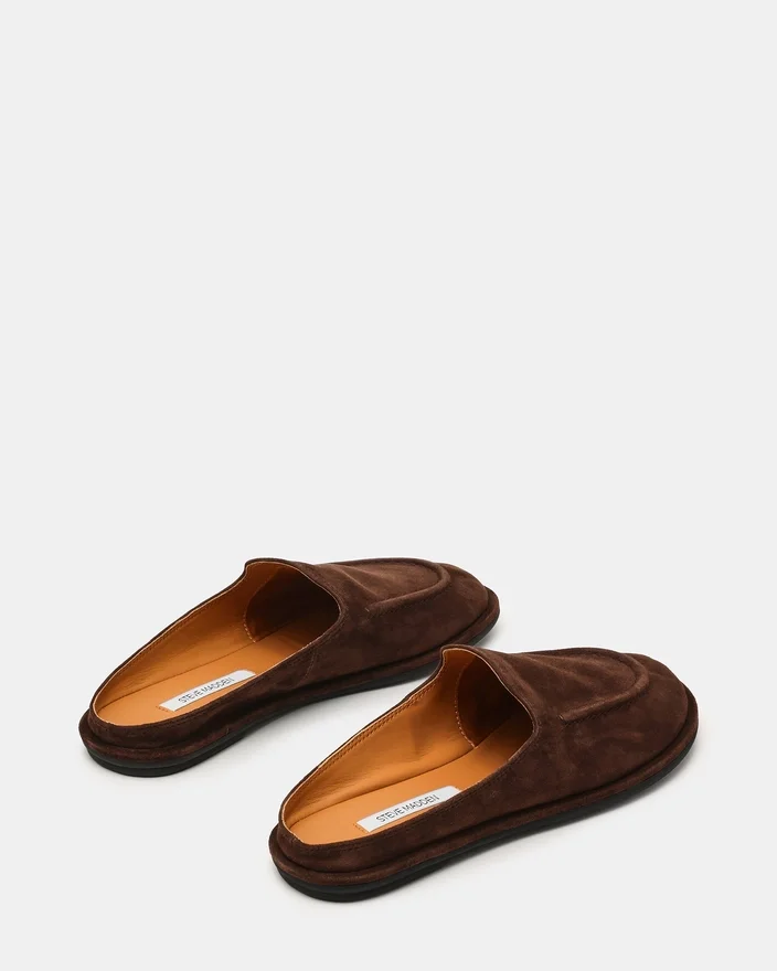 Mühelose Raffinesse trifft auf Alltagskomfort mit dem flachen Slip-On „Harrington“ aus schokoladenbraunem Wildleder. Die schlanke Silhouette passt sich nahtlos an sowohl Freizeit-Ausflüge als auch professionelle Anlässe an, während die flache Sohle den ganzen Tag über Tragekomfort bietet, ohne dabei Abstriche beim Stil zu machen. Ein zeitloses Mule-Design, das jede Garderobe mit zurückhaltender Eleganz und praktischer Vielseitigkeit bereichert.