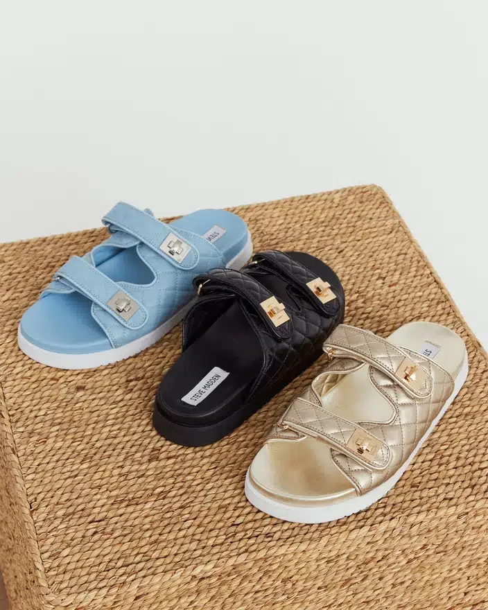 Gönnen Sie sich Luxus mit der Schmona-Sandale. Das gesteppte Material verleiht einen Hauch von Opulenz, während die Drehverschlüsse ein raffiniertes Detail bilden. Das Design mit zwei Riemen vereint Komfort und Eleganz in einem. Werten Sie Ihren Stil mit dieser exklusiven und geschmackvollen Wahl auf.