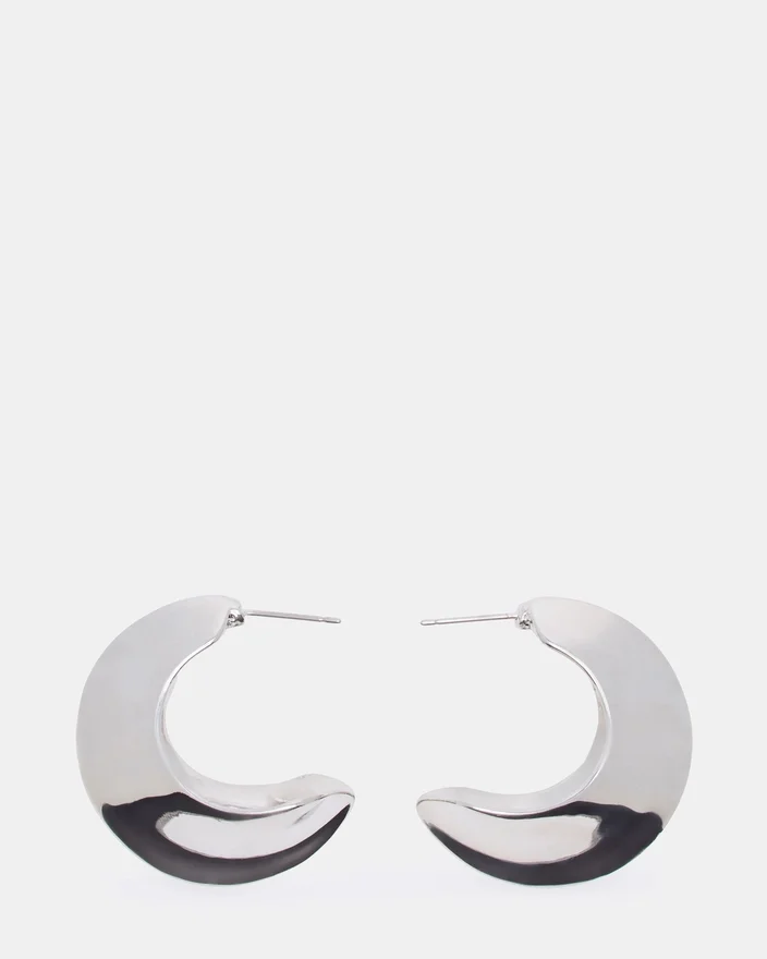 Bereichern Sie Ihre Schmuckkollektion mit diesen raffinierten silbernen Halbmond-Ohrringen, die in einem glänzenden Metallic-Finish gefertigt sind. Die anmutige, geschwungene Silhouette strahlt zeitlose Eleganz aus und lässt sich nahtlos von Tages- zu Abendgarderobe kombinieren. Ihr raffiniertes Design passt sowohl zu minimalistischen als auch zu mehrschichtigen Styling-Ansätzen und macht sie zu einer unverzichtbaren Ergänzung jeder Garderobe mit Accessoires. Perfekt für alle, die zurückhaltenden Luxus und zeitlosen Stil schätzen.