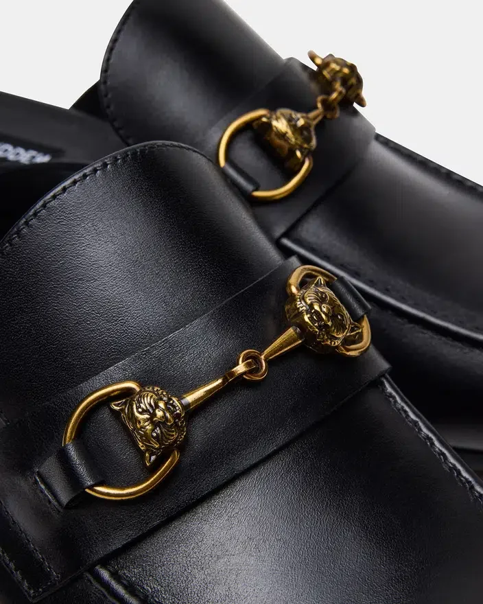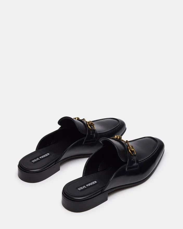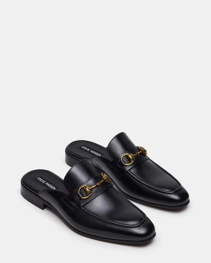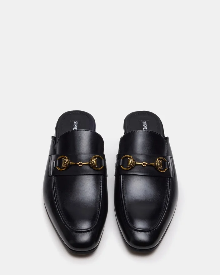 Der Jovian Slip-On-Anzugschuh aus schwarzem Leder verbindet zurückhaltende Eleganz mit praktischem Design. Diese Silhouette im Mule-Stil besticht durch eine markante Horsebit-Schnalle, die jeden formellen oder professionellen Look aufwertet. Die Konstruktion sorgt für Langlebigkeit und ein gepflegtes Erscheinungsbild, während die Slip-On-Passform den ganzen Tag über Komfort bietet, ohne Kompromisse beim Stil einzugehen.