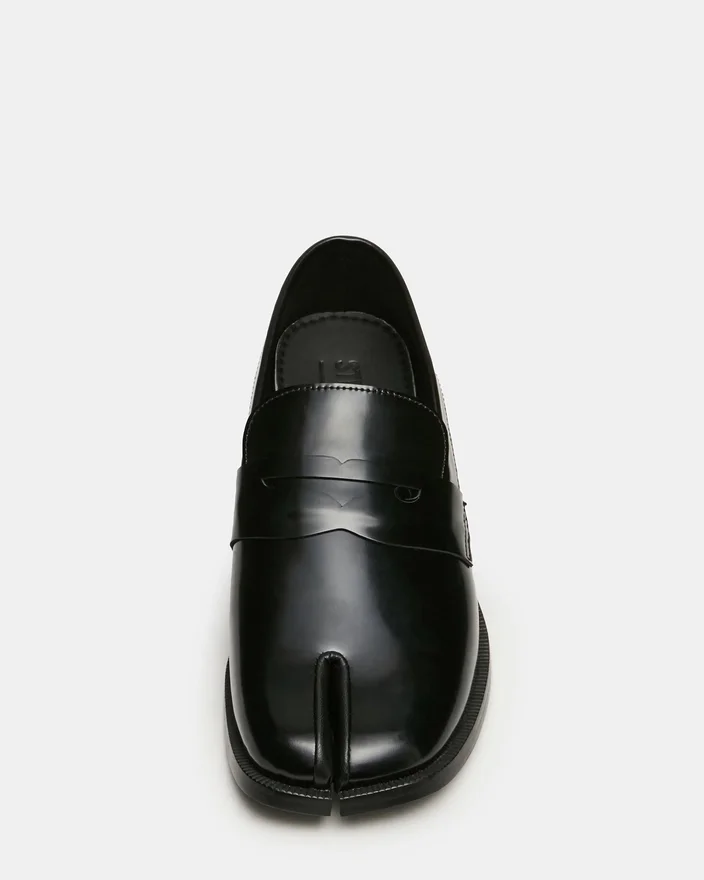Der Cosmin Black Box Loafer interpretiert eine klassische Silhouette mit dem unverwechselbaren Design der Tabi-Schuhe neu und bietet sowohl architektonische Raffinesse als auch funktionalen Komfort. Das charakteristische Split-Toe-Design sorgt für ein einzigartiges visuelles Element und bietet gleichzeitig Halt. Dieser Loafer wurde aus hochwertigen Materialien und mit Liebe zum Detail gefertigt und ist eine raffinierte Wahl für alle, die nach unverwechselbarem Schuhwerk suchen, das Tradition mit zeitgenössischem Stil verbindet.