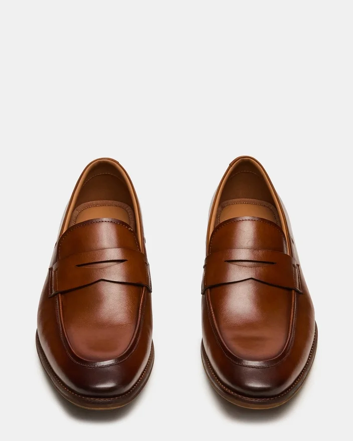Der Slip-On-Loafer aus hellbraunem Leder verbindet zurückhaltende Eleganz mit praktischem Design und verfügt über eine abgerundete Zehenpartie, die dem Fuß schmeichelt und gleichzeitig ein gepflegtes Erscheinungsbild bewahrt. Dieser vielseitige Stil lässt sich nahtlos von professionellen Umgebungen auf Freizeit-Anlässe übertragen und ist somit eine perfekte Ergänzung für jede Garderobe.