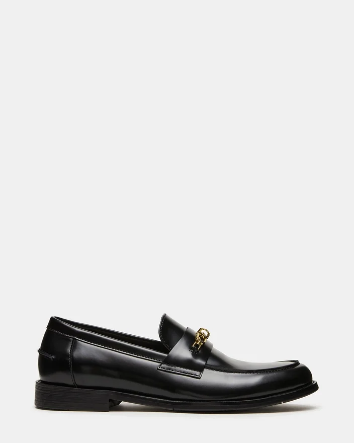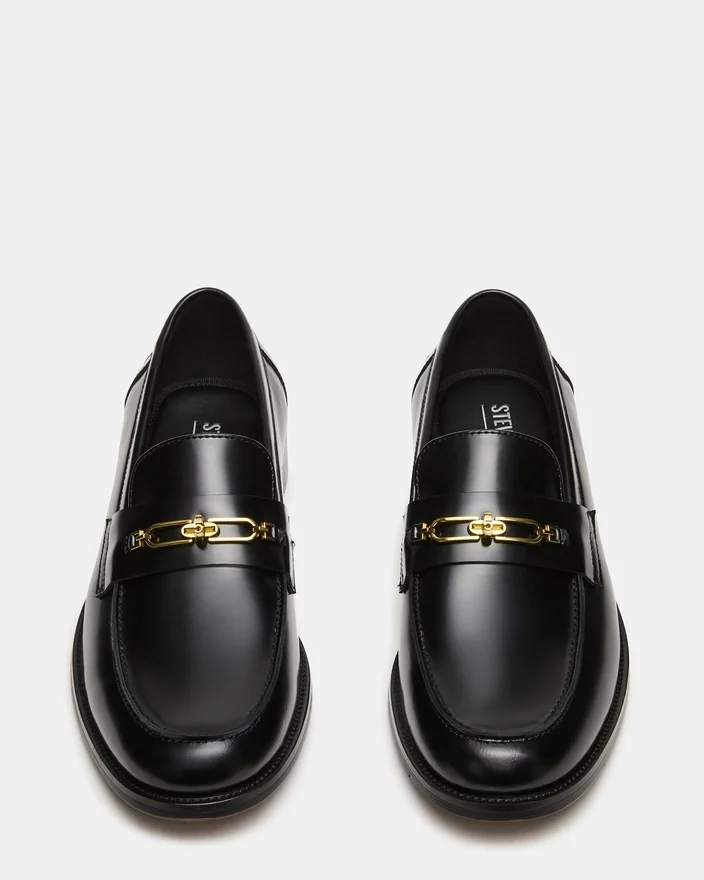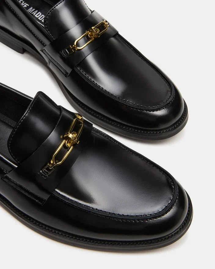 Der Nevinn Black ist ein eleganter Slip-On-Loafer, der Ihre Business-Garderobe mit raffiniertem Styling aufwertet. Dieser Loafer wurde für mühelose Eleganz entworfen und verfügt über eine schlanke Silhouette, die sich perfekt für Vorstandssitzungen oder gehobene Anlässe eignet. Die auffälligen Metallakzente verleihen dem klassischen Loafer-Design einen modernen Touch und heben ihn von eleganten Schuhen ab.