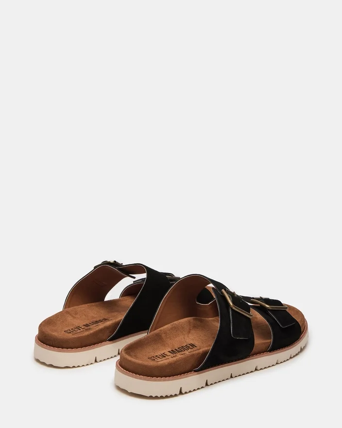 Die aus hochwertigem Wildleder gefertigten Corban-Slide-Sandalen bieten sowohl Komfort als auch Stil. Die Slip-On-Konstruktion und der doppelte Schnallenverschluss sorgen für einen sicheren Sitz und machen sie perfekt für den Alltag. Werten Sie Ihre Schuhgarderobe mit diesen vielseitigen und stilvollen Sandalen auf.