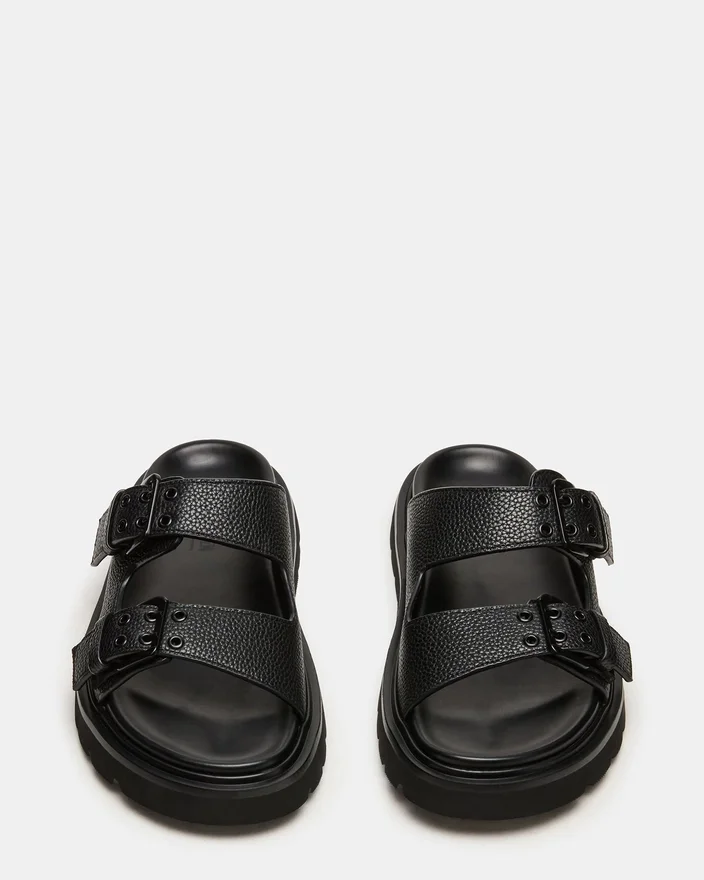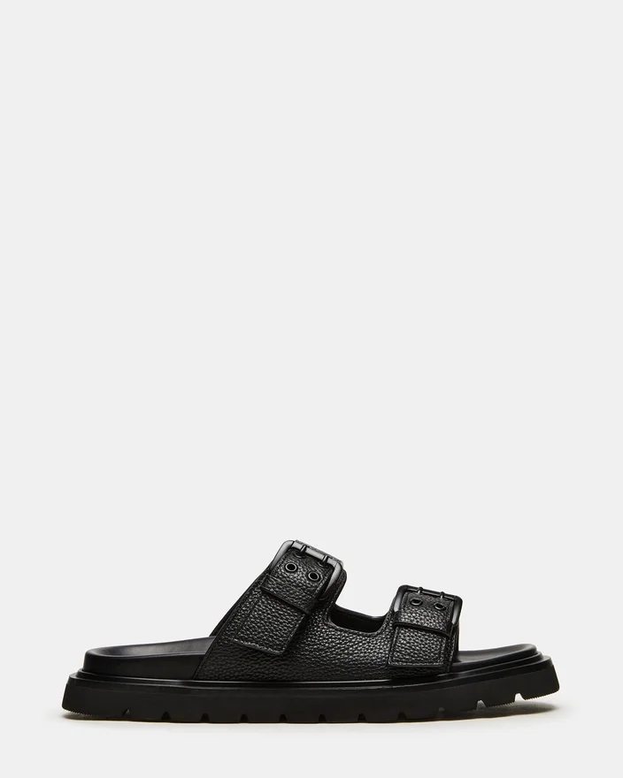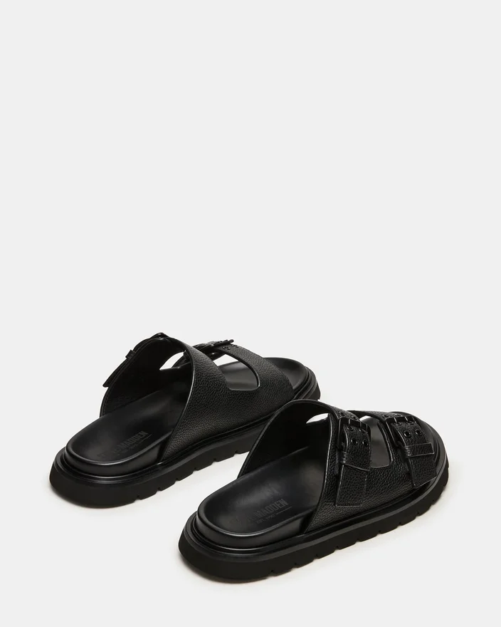 Die Luxor Black Slide Sandale verbindet zurückhaltende Eleganz mit Alltagskomfort. Mit einem konturierten Fußbett, das sich der natürlichen Form Ihres Fußes anpasst, bietet dieses Design Halt auch bei längerem Tragen. Die abgerundete Zehenpartie sorgt für eine raffinierte Silhouette, während verstellbare Riemen mit Schnallen eine individuelle Passform gewährleisten. Diese vielseitige Sandale wurde mit dem kritischen Blick für hochwertige Schuhe gefertigt und lässt sich nahtlos von Freizeitaktivitäten zu entspannter Wochenendkleidung kombinieren.