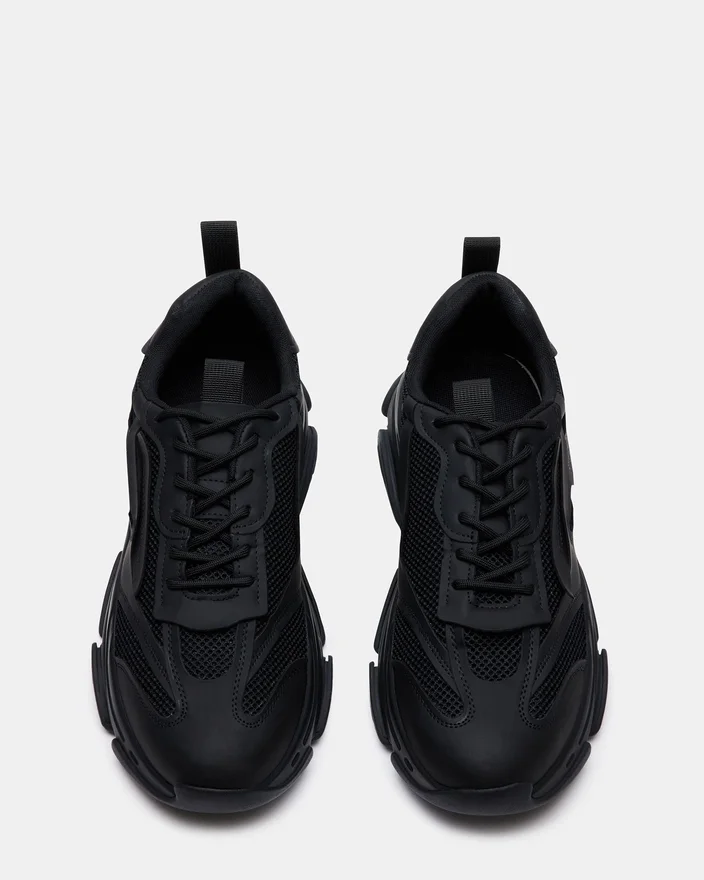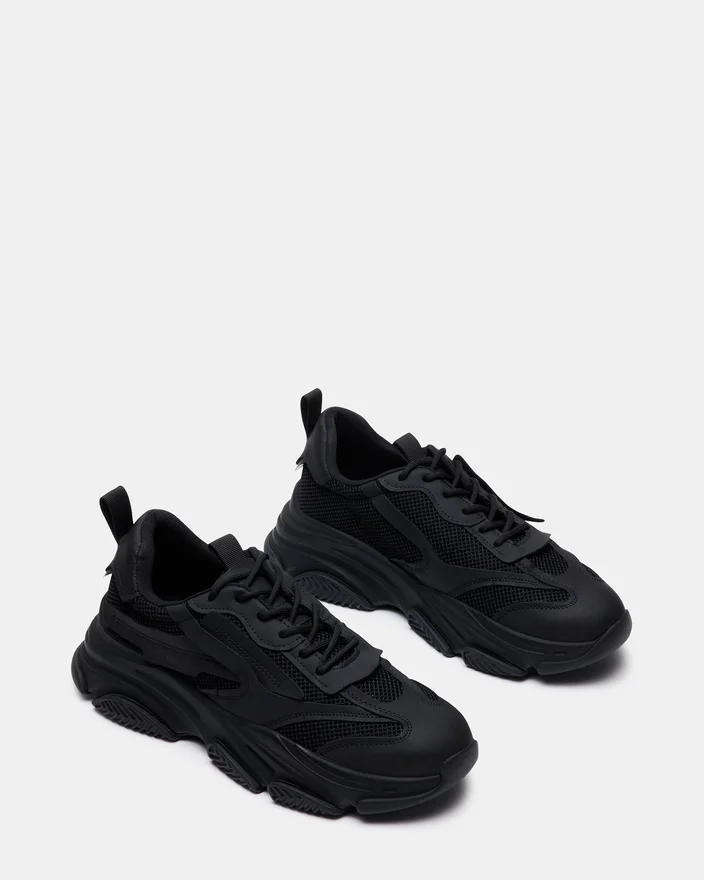 Die geschwungenen Linien der klobigen, geformten Sohle des Possess-Sneakers werden durch die geschwungenen Einsätze ergänzt, die das Mesh-Obermaterial verstärken.