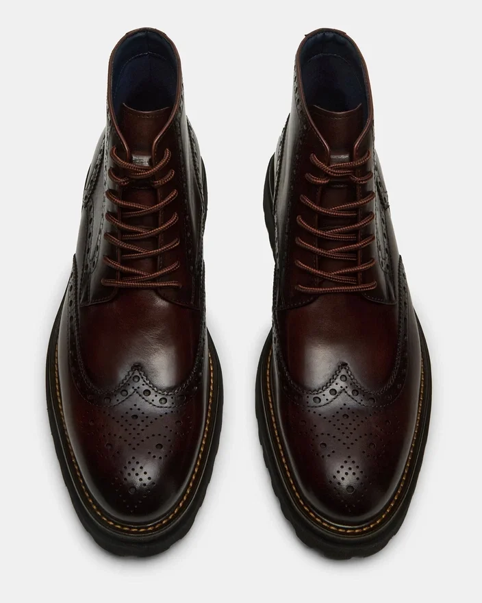 Der Koda Dark Brown Schnür-Stiefel kombiniert Langlebigkeit mit raffiniertem Stil. Sein sicheres Schnürsystem sorgt für eine individuell anpassbare Passform, während die robuste Sohle zuverlässigen Halt und Unterstützung bietet. Dieser Stiefel wurde sowohl auf Komfort als auch auf Langlebigkeit ausgelegt und ist eine unverzichtbare Ergänzung für jede Garderobe, die eine Mischung aus klassischer Handwerkskunst und moderner Funktionalität sucht.