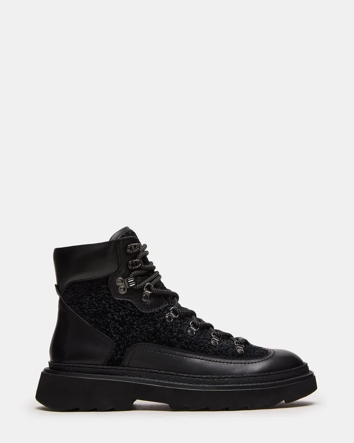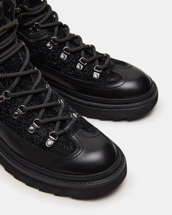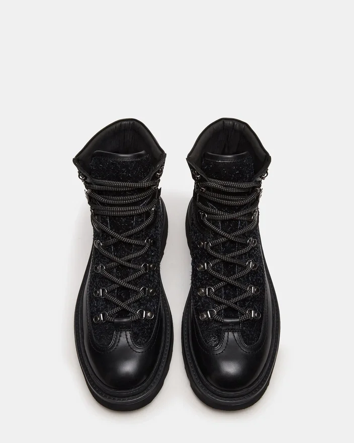 Der Yosemite Black Multi Lug Schnür-Stiefel vereint robuste Haltbarkeit mit raffiniertem Stil. Seine stabile Profilsohle bietet zuverlässige Traktion und Stabilität, ideal für verschiedene Geländearten und Wetterbedingungen.