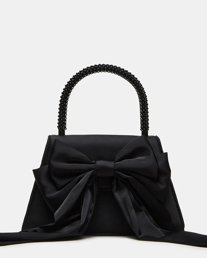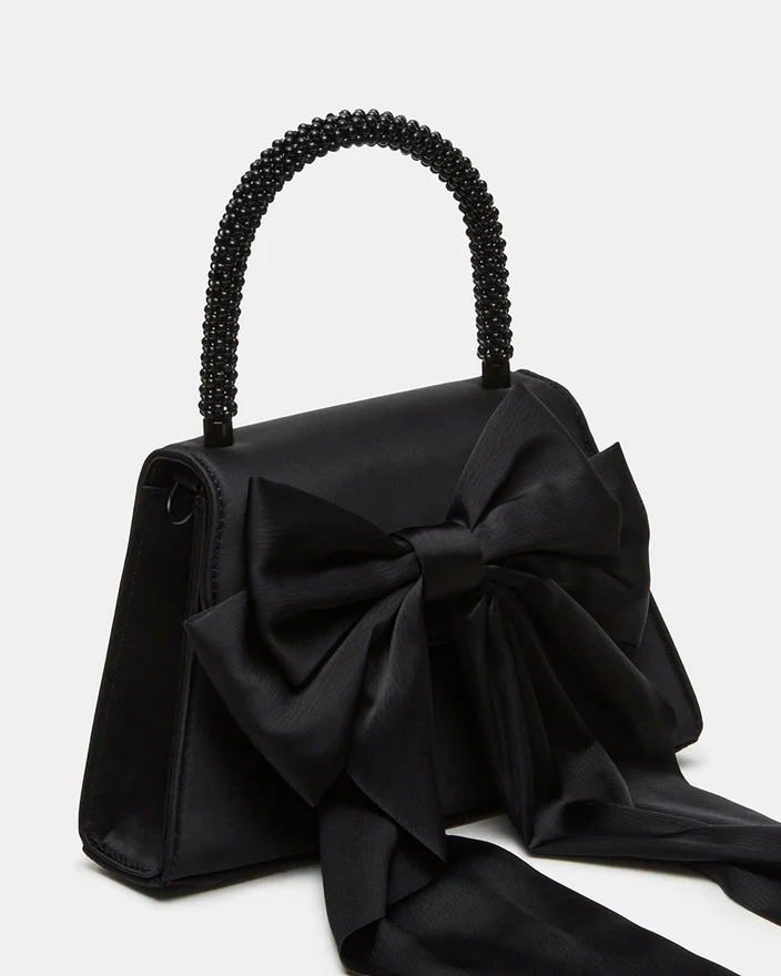 Wir präsentieren die raffinierte Cosette-Tasche. Diese elegante Tasche wurde fachmännisch aus glattem Satin gefertigt und verfügt über einen mit Perlen verzierten Tragegriff. Eine lange Satinschleife und ein strukturierter Tragegriff verleihen ihr einen Hauch von Glamour. Die Innentasche mit Schlitz an der Rückseite und der abnehmbare Kettenriemen machen die schräge, trapezförmige Silhouette besonders praktisch. Perfekt für jeden formellen Anlass – diese Tasche ist ein Must-Have für stilbewusste Menschen.