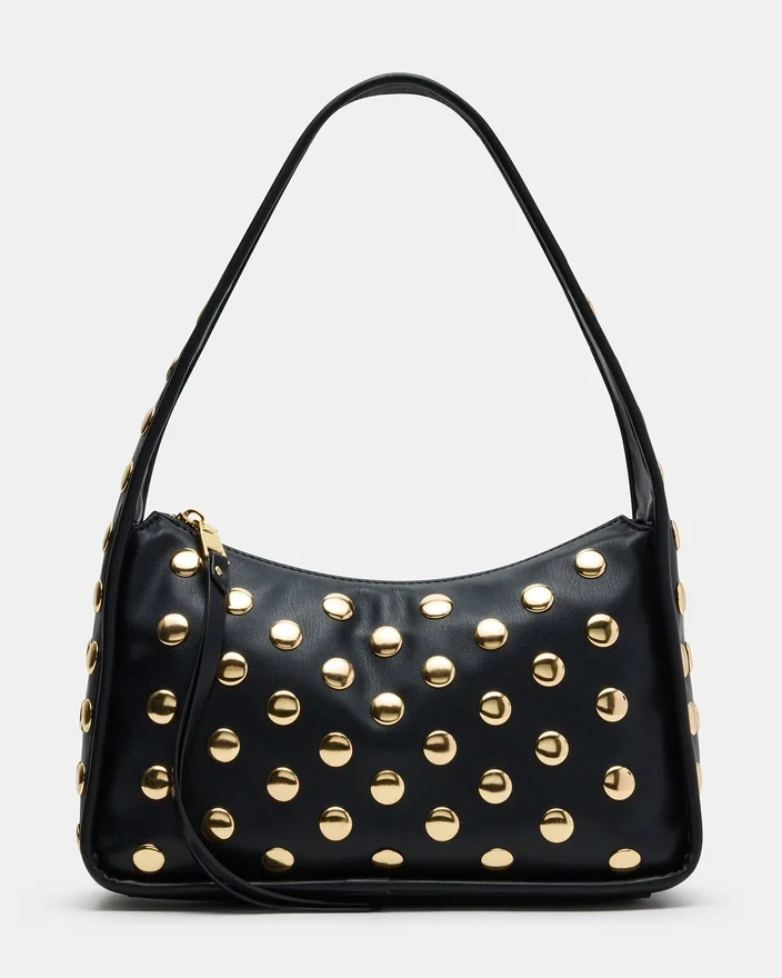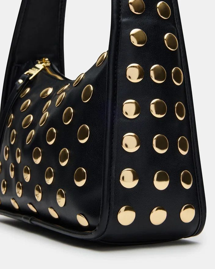 Die Cheyann Tasche Schwarz ist eine mit Nieten verzierte Hobo-Schultertasche, die sowohl auf Stil als auch auf Funktionalität ausgelegt ist. Mit ihrem sicheren Reißverschluss oben sorgt sie dafür, dass Ihre wichtigsten Dinge sicher im Inneren bleiben. Im Inneren befindet sich eine praktische Tasche an der Rückwand, die eine übersichtliche Aufbewahrung für kleinere Gegenstände ermöglicht. Diese Tasche verbindet mühelos ausgefallene Designelemente mit praktischen Details und ist damit eine vielseitige Wahl für den täglichen Gebrauch.