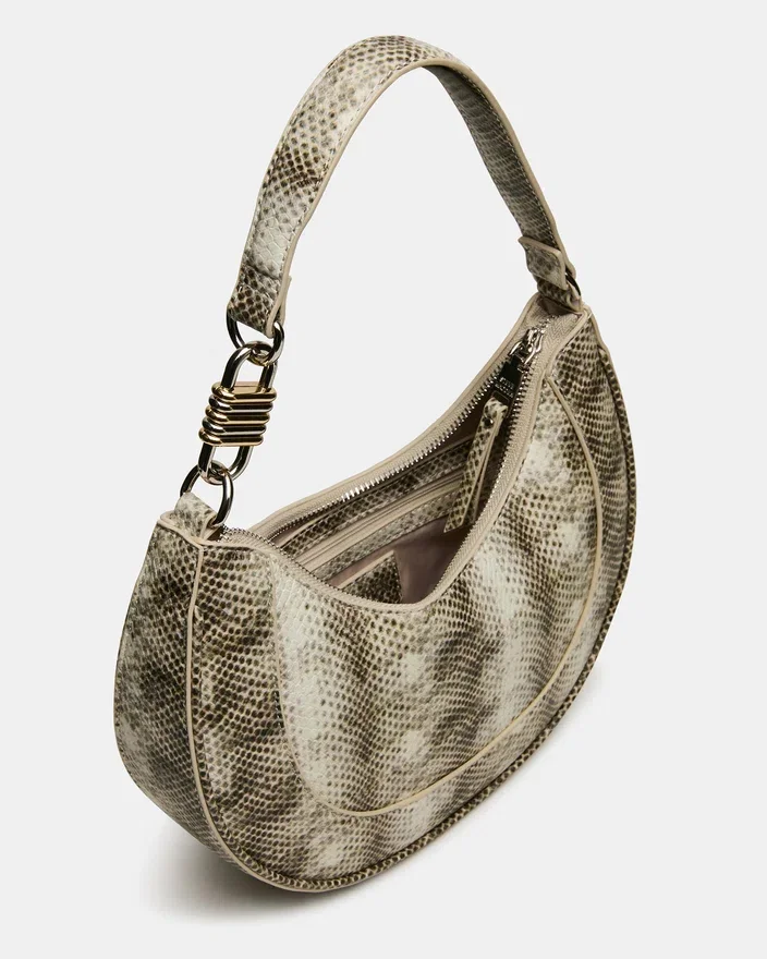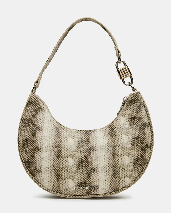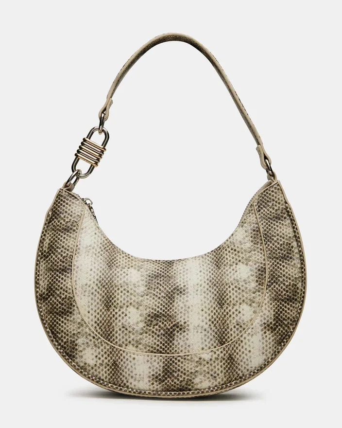 Die Lohan Bag Bone/Multi ist eine strukturierte Hobo-Schultertasche in Halbmondform, die sich durch markante Metallbeschläge auszeichnet, welche ihren stilvollen Charme unterstreichen. Sie wurde sowohl auf Funktionalität als auch auf Mode ausgelegt und verfügt über zwei Frontfächer mit Reißverschluss sowie eine Innentasche an der Rückwand, die eine übersichtliche Aufbewahrung der wichtigsten Dinge ermöglicht. Ihre Form und die robuste Konstruktion sorgen dafür, dass sie ihre Form behält und gleichzeitig bequem über der Schulter getragen werden kann, was sie zu einem vielseitigen Accessoire für den eleganten Alltag macht.