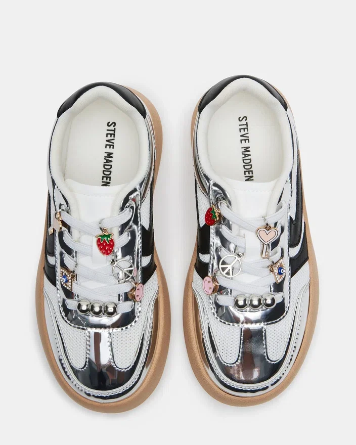 Wir präsentieren den Kids‘ Jersey Charms – einen trendigen Plateauschuh für aktive Kinder. Mit seinem Low-Top-Design und den Schnürsenkeln bietet dieser Schuh sowohl Stil als auch Funktionalität für den Alltag. Mit seiner eleganten silbernen Farbe wird Ihr Kind das coolste Kind in der Nachbarschaft sein.