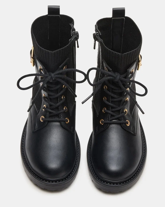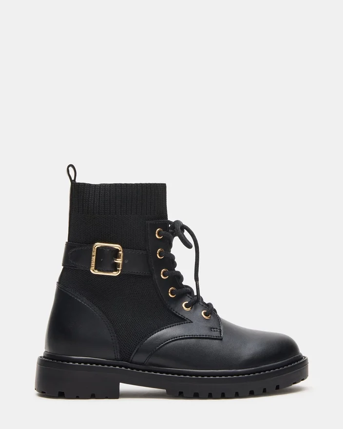 Der auf Langlebigkeit und Komfort ausgelegte Schnürstiefel „Kids‘ Kya Black“ bietet aktiven Kindern zuverlässigen Halt. Seine robuste Konstruktion und die sichere Schnürung sorgen für einen festen Sitz, wodurch er sich ideal für den Alltag und zum Spielen eignet. Diese Stiefeletten kombinieren praktisches Design mit einem eleganten schwarzen Finish, das jede Kindergarderobe ergänzt und gleichzeitig langlebigen Tragekomfort bietet.