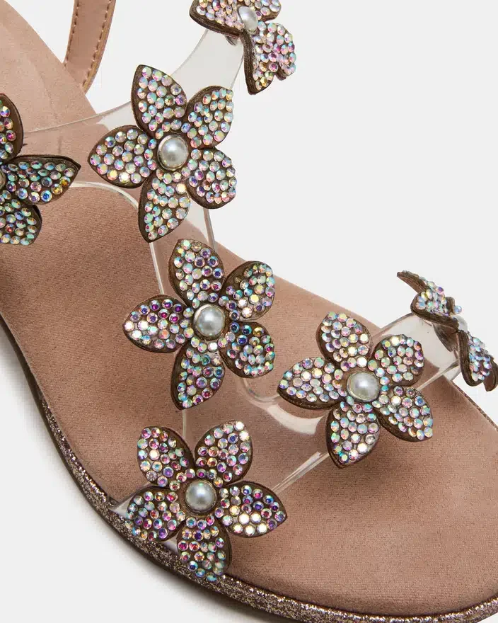 Die Kids‘ Savvy wurde fachmännisch für Komfort und Stil entworfen und verfügt über einen Riemchenabsatz und einen Blockabsatz für Stabilität und Halt. Die Strassblumenverzierungen sorgen für einen Hauch von Glanz und machen sie zur perfekten Wahl für den besonderen Anlass Ihres Kindes.