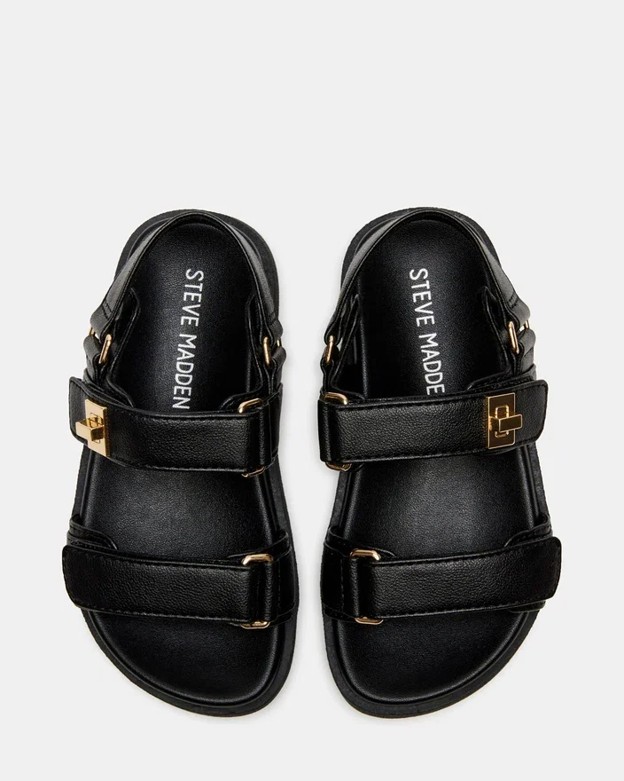 Als von Papa inspirierte Sandale bietet die „Mona“ für Kleinkinder sowohl Stil als auch Komfort für Ihren kleinen Liebling. Der Slingback-Fußriemen und die Klettverschlüsse oben sorgen für einen sicheren Sitz, während das Flatform-Design einen trendigen Touch verleiht. Der bequeme Socken-Innenschuh gewährleistet Tragekomfort den ganzen Tag über. Perfekt für jede kleine Fashionista.